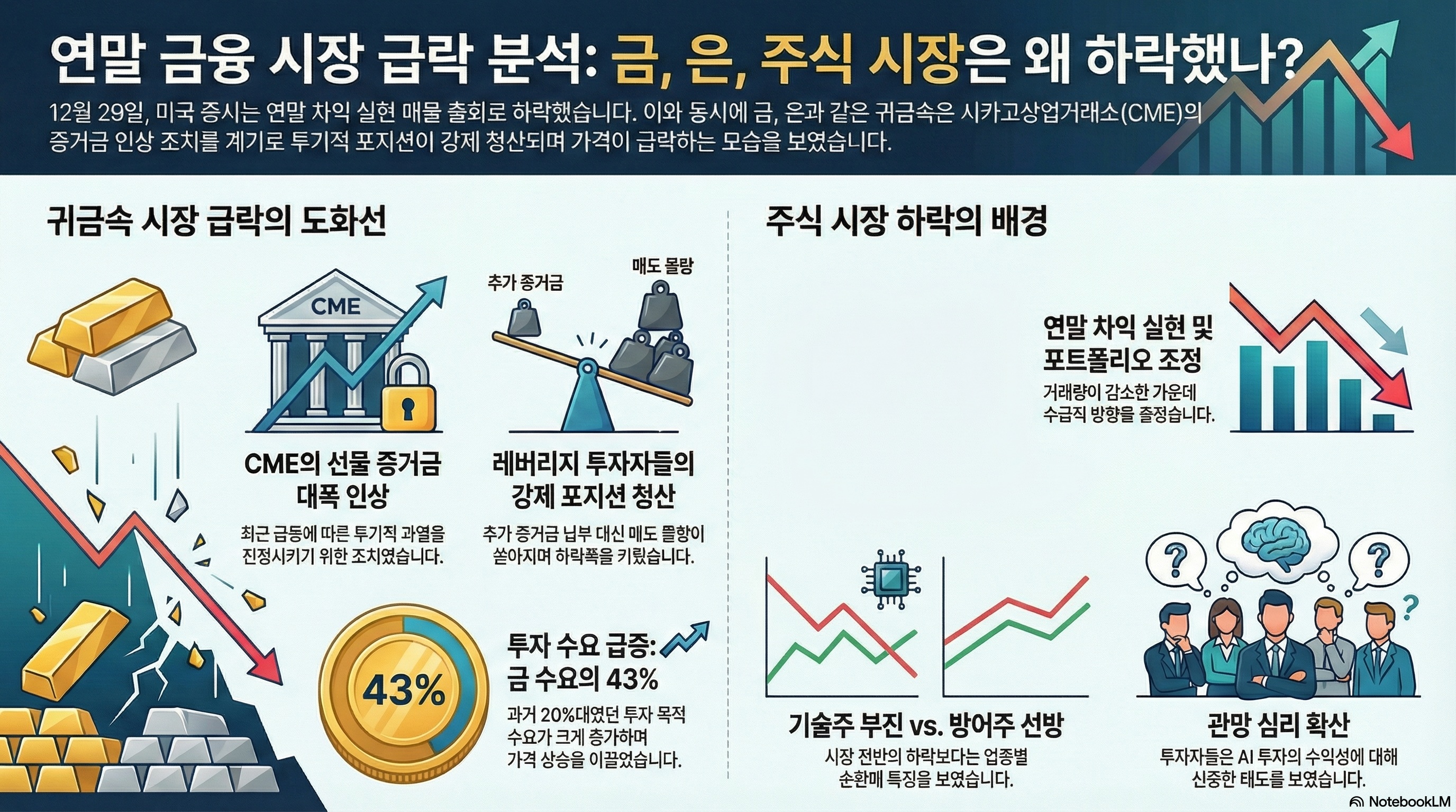 12/29 미 증시, 금, 은 급락 속 차익 실현 매물 출회되며 하락