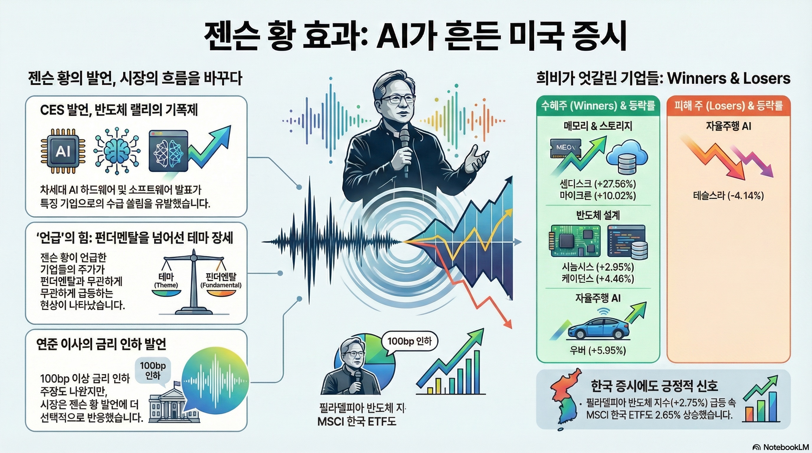 01/06 미 증시, 젠슨 황 발언을 빌미로 반도체 업종이 크게 상승하며 지수 견인