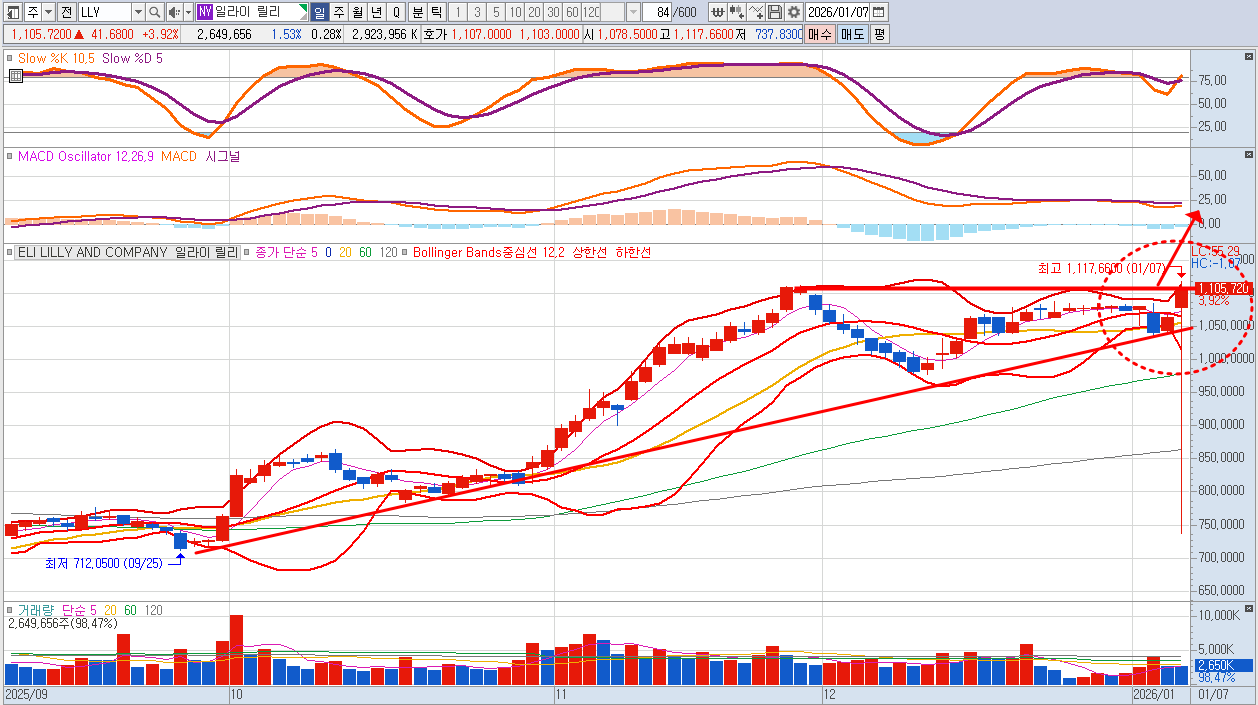 바이오주인 일라이 릴리, 애브비, 길드 등이 강세를 보였는데 최근 특별한 호재가 없었지만 업계의 판이 항암제 중심에서 비만치료제 중심으로 바뀌면서 새로운 성장동력으로 작용하고 있기 때문으로 풀이 됨. 이는 국내 항암치료제 관련주에도 같은 흐름을 보일 가능성이 높음.