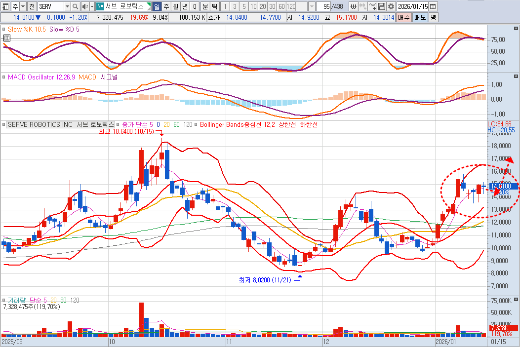 미국주식에서 서브로보틱스는 소폭 밀린 상황이지만 밀릴 때마다 분할매수해서 중장기 승부하는 전략임. 이후에도 조정시 분할매수로 대응하는 전략이 바람직.
