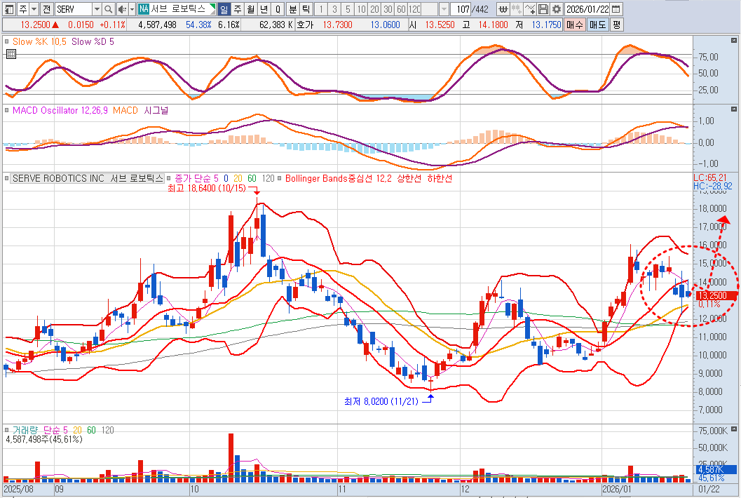 로봇주는 오르고 내리기를 반복하면서 냄비같은 움직임을 보이고 있음. 많이 올라 오를 때를 이용해 매도하는 주체가 존재하는 것으로 보임. 급등주는 주의해야 할 상황.