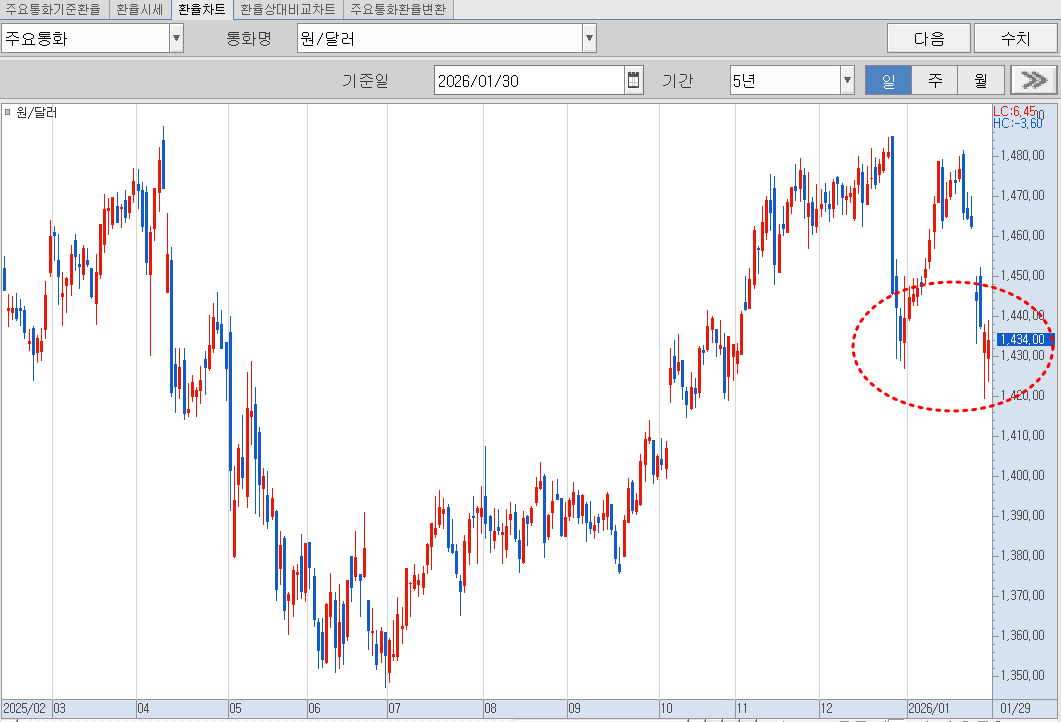 미국의 환율조작국 지정 속에 원달러 환율은 현재시간 1,436.30원 수준으로 소폭 상승.