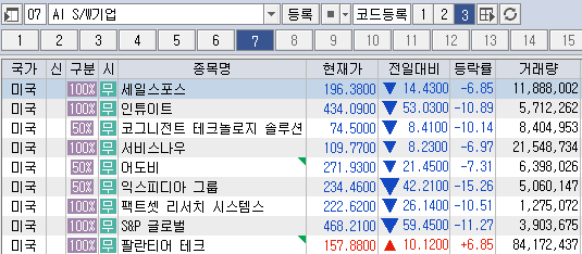 미국은 지금 AI기업 엔스로픽이 AI자동화 도구를 공개했는데, 이의 매기역할로 기존 S/W 기업들의 설자리가 흔들릴 수밖에 없음. 법률, 마케팅, 의료 등 각종 데이터 분석의 S/W기업들에 치명타일 수밖에 없음(위 표)