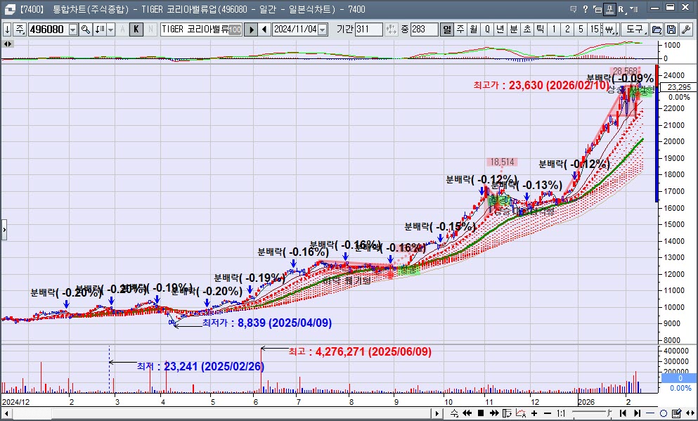 오늘은 어제 조정장에서 선방한 금융업종이 주를 이룬 밸류업관련 ETF 챠트를 보여드립니다.