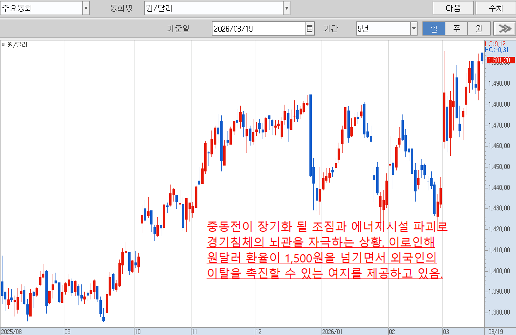 코스피를 기준으로 보면 전쟁직전의 2월 말 고점 이후 3/4일 저점이 A파, 전일(3고점(3/18)이 B파, 그리고 금일부터 C파동의 막바지 조정과정이 시작된 것으로 볼 수 있음. 전쟁양상에 따라 저점의 수위는 달라지겠지만 C파동을 원활히 거친 후 새로운 상승이 가능한 상황.