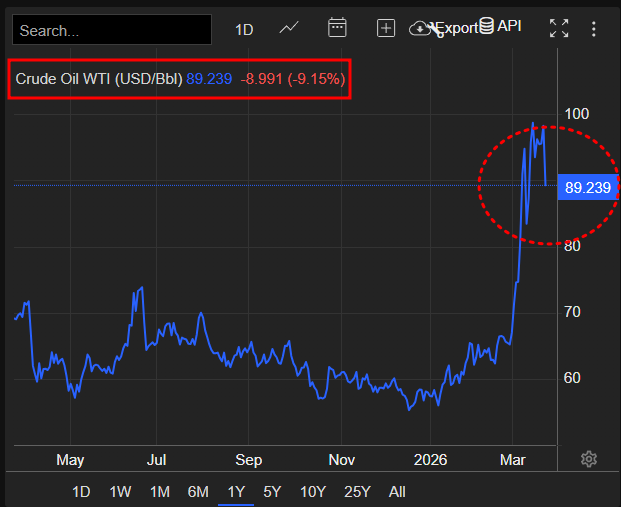 미국이 이란에 대해 48시간 내에 호르무즈해협을 개방하지 않으면 이란의 발전시설을 파괴하겠다는 최후통첩 시간 마감 직후 갑자기 이란과의 협상개시 소식이 알려지면서 유가가 급락(현재시간 88$대로 급반락)하는 가운데, 미국증시는 3대지수는 물론 반도체지수까지 모두 1% 이상씩 상승함.