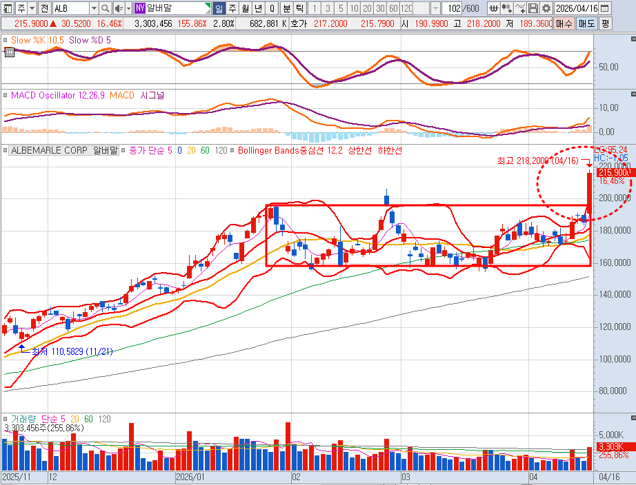 테슬라 팹에 들어간 인텔, 레노버가AMD 라이젠 10시리즈 탑재에 따른 AMD, 등이 강하게 올라 주목을 끌었음. 그리고 리튬가격의 강세(167,500위안)으로 알버말이 초강세를 보이는가하면 리비안도 강한 상승세를 보임. 알버말의 초강세는 금일 국내 리튬관련주를 자극할 가능성이 높다는 판단임. 이것이 2차전지에도 긍정적 영향을 미칠 수 있을 것으로 보임.