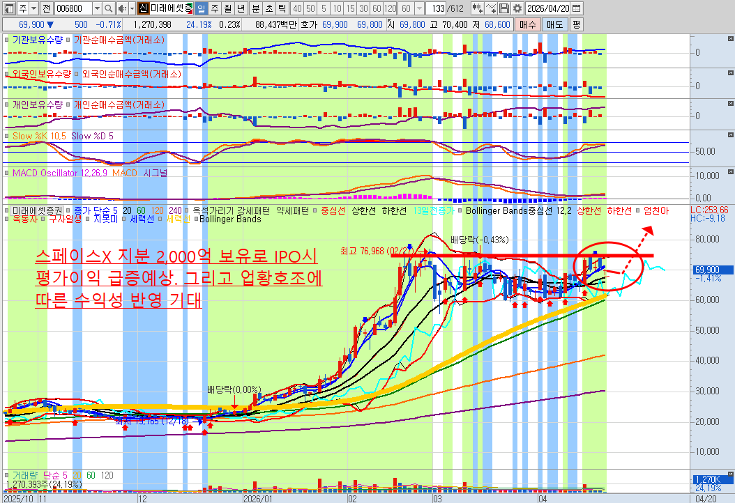 미래에셋증권, 삼성전자 등도 조정을 보이지만 이는 중동불안영향일 뿐 큰 불안은 없다는 판단임.