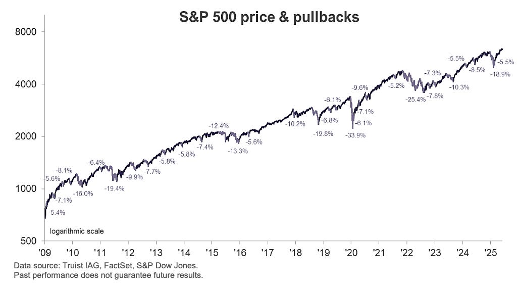 트루이스트의 키스 러너는 금요일 "S&P 500이 건전한 상승세를 보였음에도 2009년 이후 5% 이상의 조정을 30회 이상 겪었다"고 분석했다.