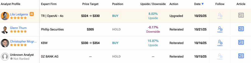 평균 12개월 JPM 목표주가는 338.77달러로, 현재 주가 대비 10.9%의 상승 여력을 시사한다.