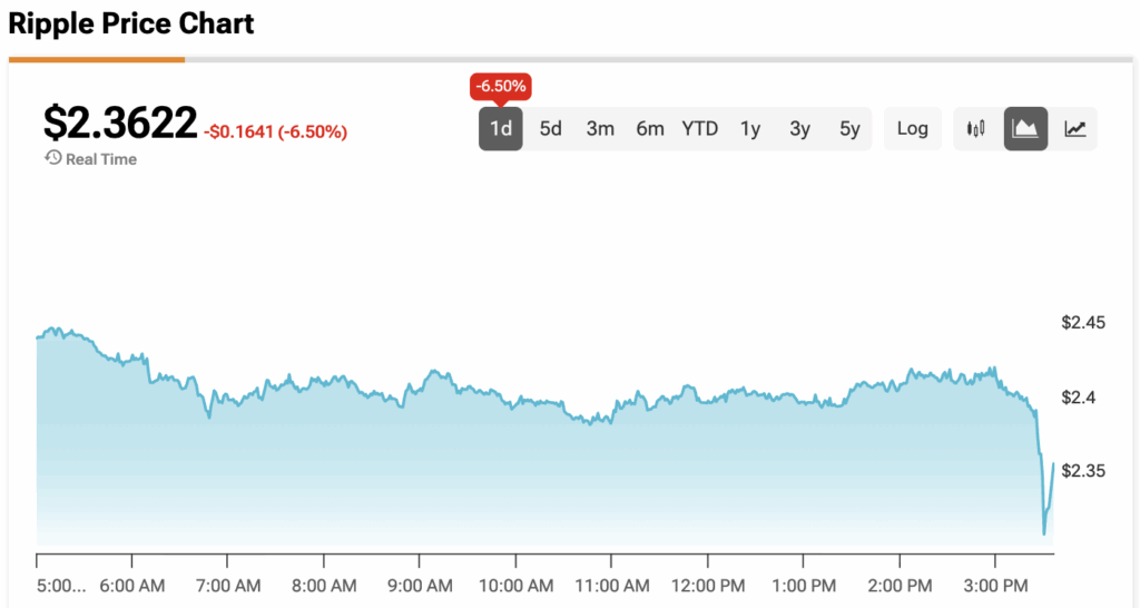 현재 시장은 발로 투표하고 있다. 이 글을 쓰는 시점에 XRP는 2.36달러에 거래되고 있으며, 장중 고점인 2.54달러에서 거부당한 후로, 온라인에서 계속 떠도는 환상적인 숫자와는 거리가 멀다.