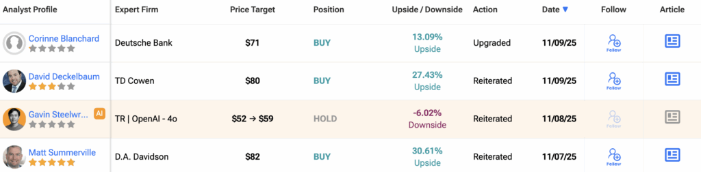 증권가의 평균 12개월 MP 목표가는 81.63달러로, 현재 가격 대비 약 30%의 상승 여력을 시사한다.