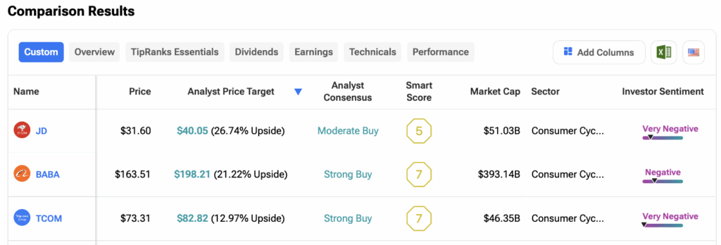 팁랭크스의 베스트 중국 주식 도구를 활용해 증권가가 현재 "매수 강력 추천"으로 평가하는 중국 주식 3종목을 선정했다. 이 도구는 애널리스트 등급, 스마트 스코어, 배당 수익률 등 다양한 요소를 기준으로 주식을 비교할 수 있게 해준다. 다음은 관심 목록에 추가할 만한 중국 주식 3종목이다.