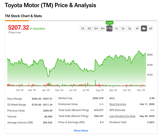 다른 자동차 제조업체들과 마찬가지로 도요타는 전기차 및 하이브리드 차량에 영향을 미치는 규제 변화와 신차 및 자동차 부품에 대한 미국 관세 환경을 헤쳐나가려 노력해왔다. 올해 3분기까지 도요타의 미국 판매량은 전년 대비 10% 증가한 130만 대 이상을 기록했다.