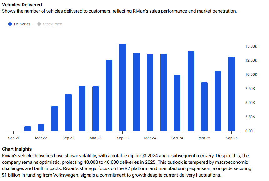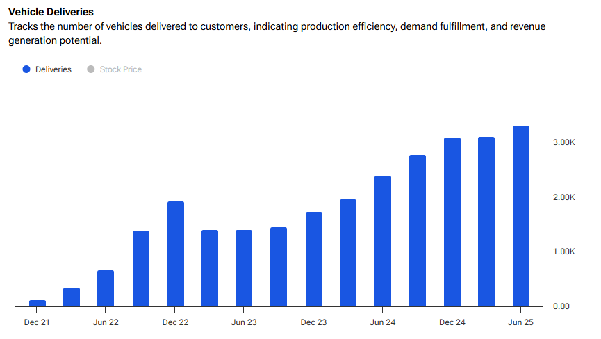 리비안은 보다 균형 잡힌 한 해를 보냈다. 3분기에 이 회사는 R1S와 R1T 모델을 통틀어 13,702대를 인도했다. 올해 초 리비안은 관세가 생산 비용을 증가시킬 수 있다고 경고했다. 그럼에도 이 회사는 조지아에 새 공장 착공에 들어갔다. 이 부지는 내년 출시 예정인 저가형 R2 크로스오버에 핵심적이다.