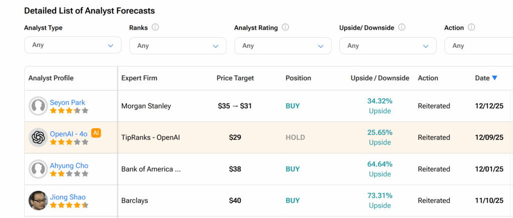 이 애널리스트는 목표주가를 주당 35달러에서 31달러로 하향 조정했음에도 CPNG에 대한 매수 의견을 유지했다. 그러나 그의 목표주가는 약 34%의 상승 여력을 시사한다.