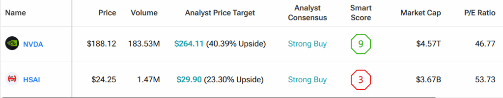 우리는 팁랭크스 비교 도구를 사용해 두 회사를 나란히 배치하여 각 주식과 자율주행 섹터 전체에 대한 더 넓은 시각을 얻었다.
