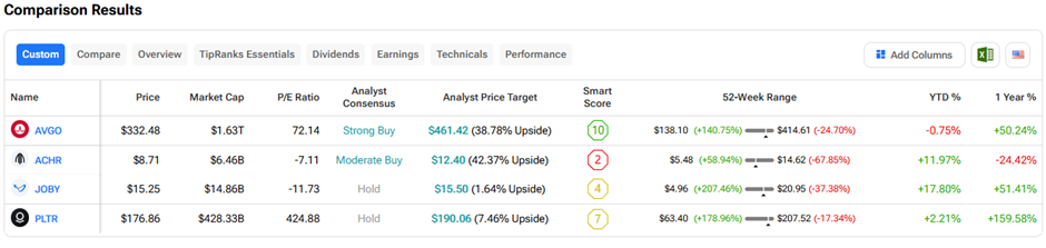 팁랭크스 주식 비교 도구를 사용해 이들 종목의 성과를 살펴보자.