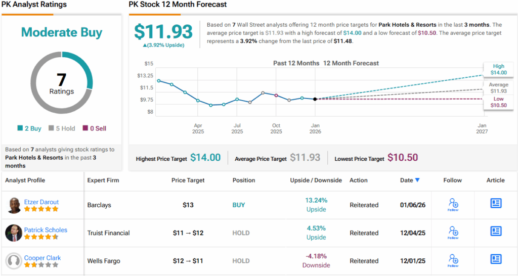 더 광범위하게, PK는 월가에서 적극 매수 컨센서스를 얻고 있으며, 매수 2개가 보유 5개의 더 큰 진영을 능가한다. (PK 주가 전망 참조)