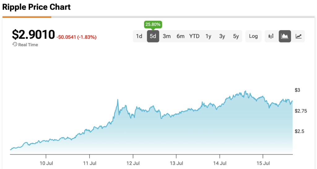 현재 XRP 가격은 2.9010달러에 거래되고 있다.