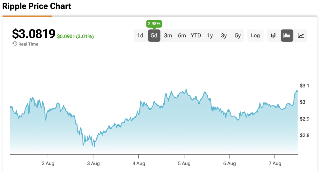 현재 XRP는 3.0819달러에 거래되고 있다.