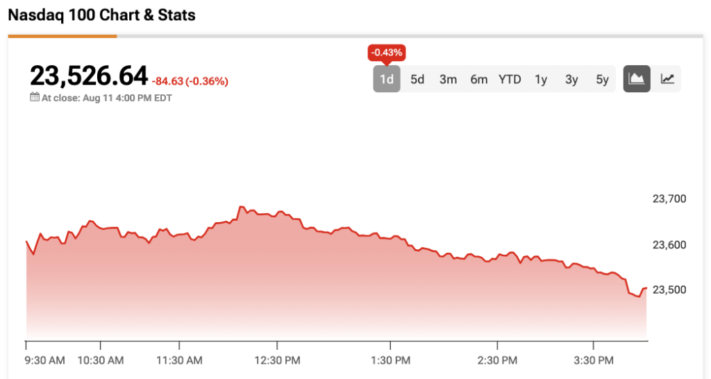 S&P 500 지수(SPX)는 0.25% 하락했고, 나스닥 100 지수(NDX)는 0.36% 하락 마감했다.