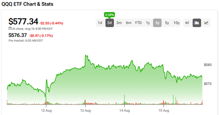 인베스코 QQQ ETF가 최근 5일간 0.58% 상승했으며, 연초 대비 13.2% 상승세를 기록했다.
