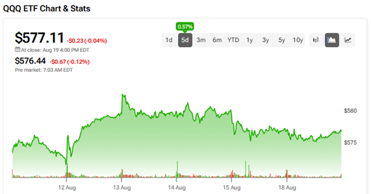 인베스코 QQQ ETF가 최근 5일간 0.57% 상승했으며, 연초 대비 13.2% 상승세를 기록했다.