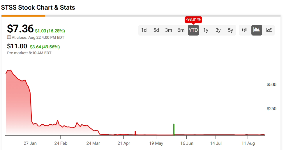 샤프스테크놀로지 주가는 금요일 16.28% 상승에 이어 월요일 장전거래에서 49.56% 급등했다. 그러나 연초 대비 98.81%, 최근 12개월간 99.57% 하락한 상태다. 이날 거래량은 770만주를 기록해 최근 3개월 일평균 거래량 7.3만주를 크게 웃돌았다.