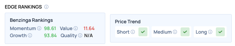 당일 하락에도 불구하고, 벤징가 엣지 주식 순위에 따르면 로빈후드는 98.61의 매우 높은 모멘텀 점수를 기록했다.