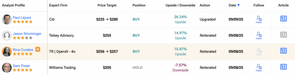 12개월 목표주가는 평균 242.50달러로, 현재 주가 대비 약 9.33%의 상승 여력이 있는 것으로 분석됐다.