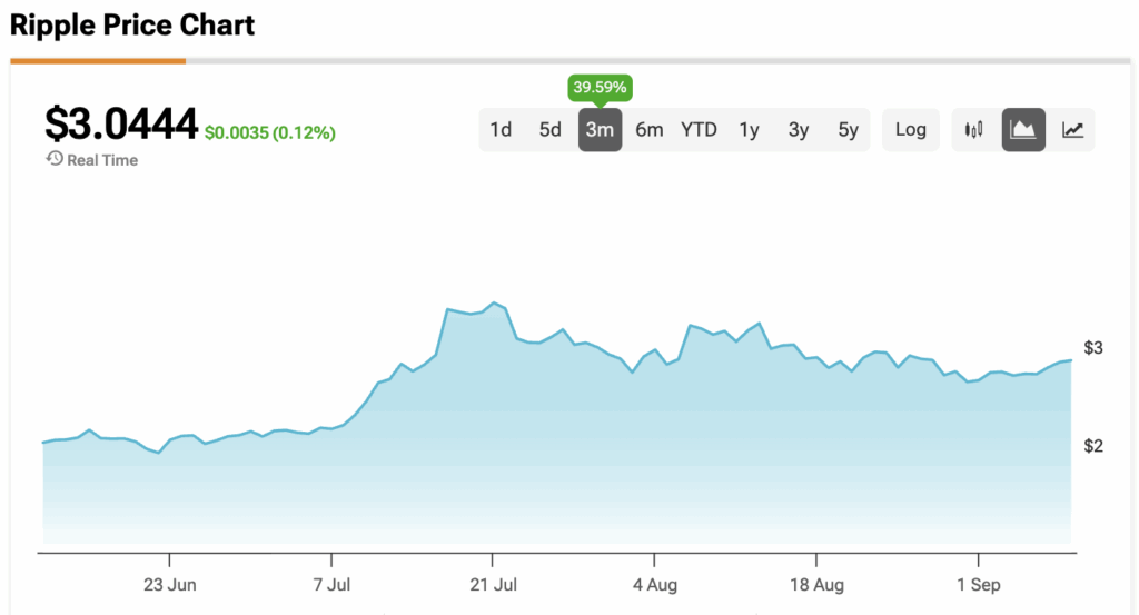 현재 XRP 가격은 3.0444달러에 거래되고 있다.
