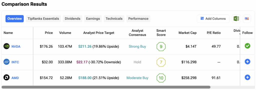 투자자들은 팁랭크스 주식 비교 도구에서 애널리스트 평가와 다양한 재무 지표를 바탕으로 이들 주식을 비교할 수 있다. 아래 이미지를 클릭하여 도구를 살펴보자.