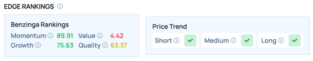 테슬라는 모멘텀과 성장성 지표에서 우수한 평가를 받고 있으며, 품질 면에서는 만족스러운 수준을 보이고 있다. 다만 가치 측면에서는 낮은 평가를 받고 있다. 단기, 중기, 장기적으로 우호적인 가격 추세를 보이고 있다.