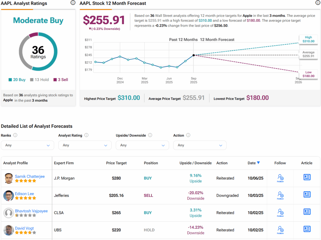 월가를 보면, 애널리스트들은 지난 3개월간 매수 17개, 보유 14개, 매도 2개의 의견을 바탕으로 AAPL 주식에 대해 보통매수 합의 등급을 부여했다. 또한 AAPL 평균 목표주가는 주당 251.24달러로 1.5%의 하락 위험을 시사한다.
