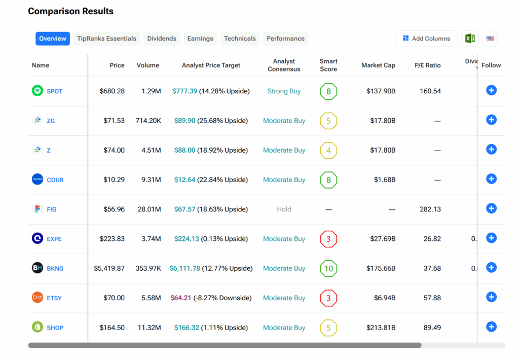 팁랭크스 주식 비교 도구는 ChatGPT와의 새로운 통합으로 혜택을 받는 주식 중 현재 매수할 만한 종목이 무엇인지에 대한 방향을 제시한다. 아래 그래픽을 참조하기 바란다.