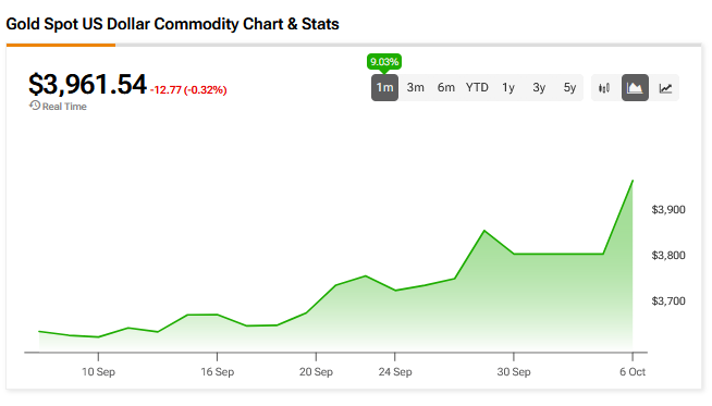 미국 정부 셧다운, 프랑스 정부의 또 다른 붕괴, 추가 금리 인하 기대감도 금을 더욱 빛나게 만들었다.