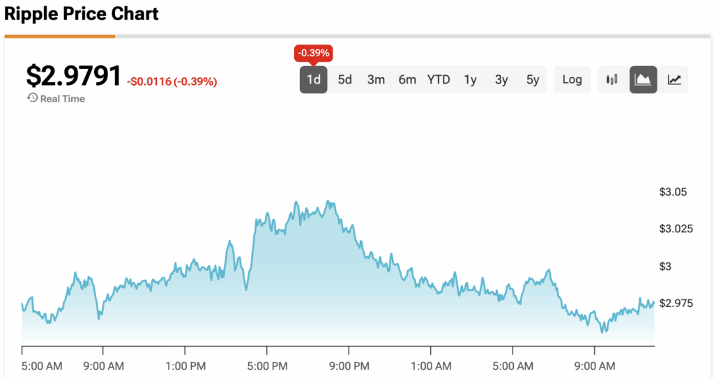작성 시점에서 XRP는 2.9791달러에 거래되고 있다.
