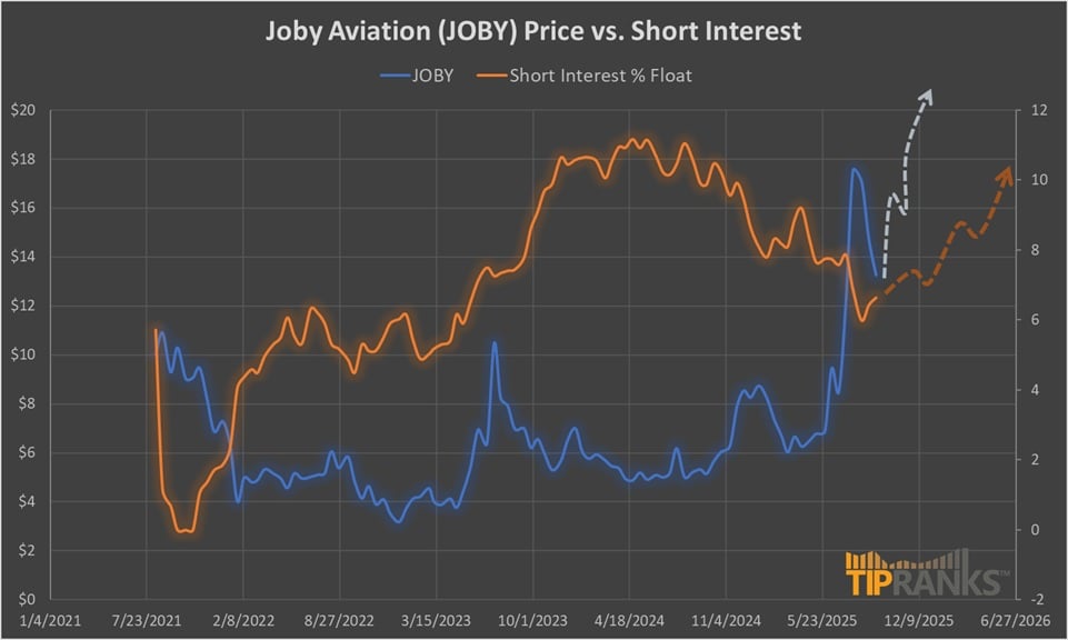 앞서 언급했듯이 최신 추정치에 따르면 공매도 비중은 10.9%에 달한다. 예상대로 JOBY 주식이 가치 상승하면서 - 지난 한 달간 거의 36% 상승 - 약세 세력들이 기초 사업에 대해 공격적으로 베팅을 하느라 바빴다.