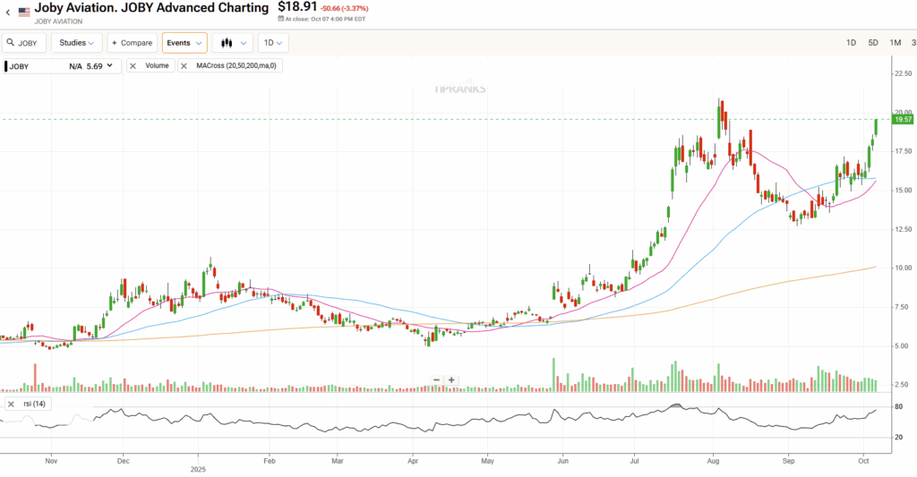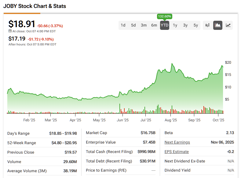 인정하건대, 다른 투자자들에 비해 나는 늦게 뛰어들었다. 하지만 JOBY 주식 차트를 한 번 보면 봐야 할 모든 것이 드러났다. 이것은 변혁적인 투자이며, 따라서 진정으로 평가하기 위해서는 다른 관점이 필요하다. 올해 들어 지금까지 이 주식은 두 배 이상 상승하여 132% 상승률을 기록했다.