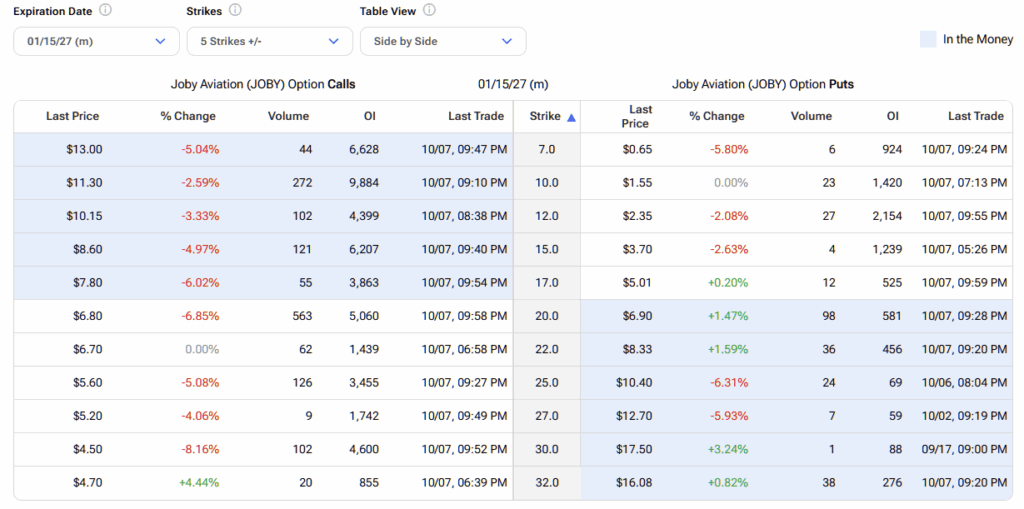 궁극적으로 나는 조비 에비에이션이 인증 과정에서 꾸준한 진전을 계속 이룰 것이며, 이로 인해 공매도 논리가 점점 더 지지할 수 없게 될 것이라고 믿는다. 그 변곡점이 도달하면 공매도 스퀴즈가 JOBY 주식을 새로운 사상 최고치로 끌어올릴 수 있다. 내 견해로는 2027년 1월 15일 만료 20달러 콜옵션이 훌륭한 기회를 제공하며, 나는 계속해서 포지션을 늘려갈 계획이다.