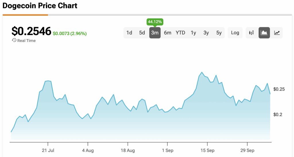 이 글을 쓰는 시점에서 도지코인은 0.2546달러에 거래되고 있다.