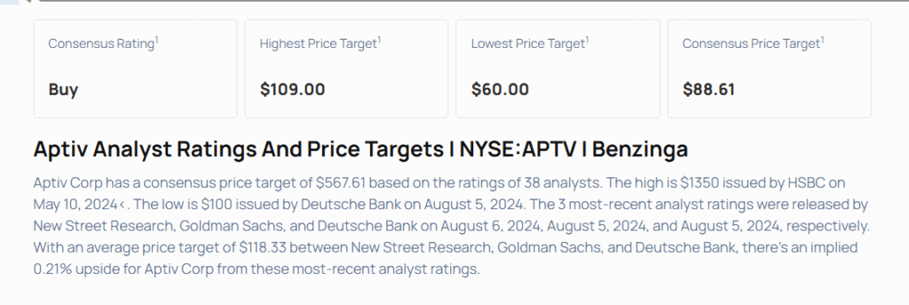 - 씨티그룹의 마이클 워드 애널리스트는 앱티브(APTV)에 대해 매수 의견과 목표가 109달러를 제시하며 커버리지를 개시했다. 앱티브 주가는 목요일 82.71달러에 마감했다.