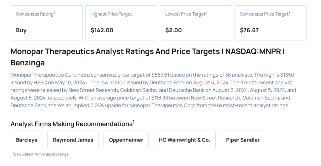 - 바클레이즈의 애널리스트 에처 다라우트는 모노파 테라퓨틱스(NASDAQ:MNPR)에 대해 비중확대 의견과 목표가 125달러를 제시하며 커버리지를 개시했다. 모노파 테라퓨틱스 주가는 금요일 87.82달러에 마감했다.