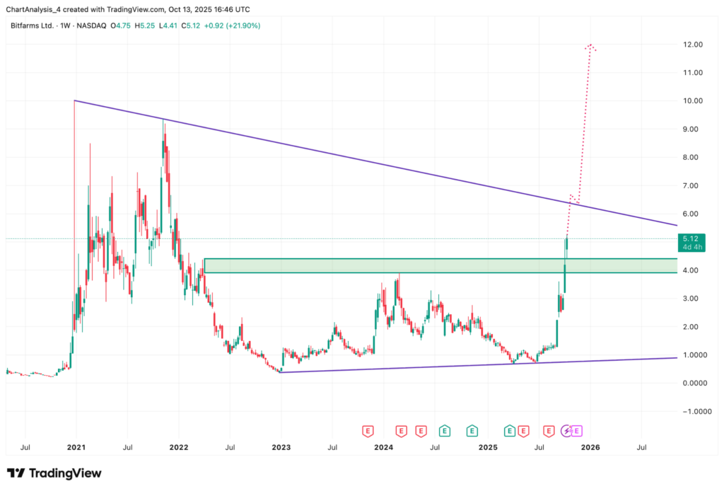 비트팜스 주가는 이번 주 20% 이상 상승하며 5.12달러 선에서 거래되고 있다.