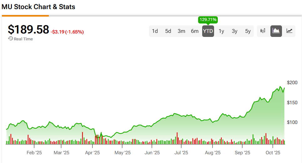 마이크론 주가는 화요일 1.65% 하락했지만 연초 대비로는 여전히 129.71% 상승했다. 주식은 또한 지난 12개월 동안 84.79% 급등했다. 마이크론은 AI 붐과 자사 제품에 대한 수요 증가로 혜택을 받은 기술 기업 중 하나다. 이는 AI 기술을 구동하기 위해 구축되는 데이터센터 수가 증가했기 때문이다. 더 많은 데이터센터 건설 계획으로 마이크론은 자사 제품을 필요로 하는 풍부한 고객층을 확보할 가능성이 높다.