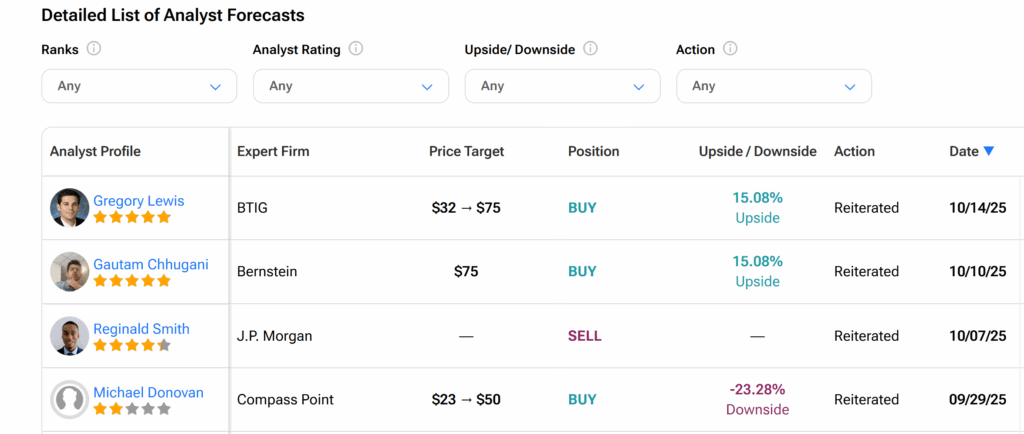 캔터 피츠제럴드의 애널리스트 브렛 노블라우치는 목표주가를 주당 49달러에서 100달러로 상향 조정해 104% 인상했다. BGIT의 그레고리 루이스는 더 나아가 134% 인상하며 목표주가를 32달러에서 75달러로 올렸다.
