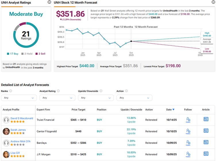한편 트루이스트의 톱 애널리스트 데이비드 맥도날드는 헬스케어 서비스 부문의 3분기 실적에 대한 광범위한 노트의 일환으로 UNH 주식의 목표주가를 상향 조정했다. 이 5성급 애널리스트는 업계에 대해 "광범위하게 강세"를 보이며 핵심 수요 동력의 지속적인 강세를 예상한다고 밝혔다.