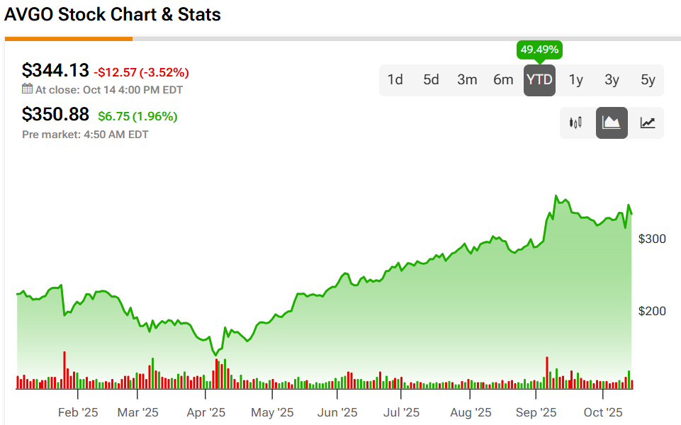 브로드컴 (AVGO)이 AI를 지원하는 네트워크용 최초의 와이파이 8 칩을 출시했다. 파리에서 열린 네트워크 X 2025에서 발표된 이번 출시는 무선 시스템이 데이터와 전력 사용을 관리하는 방식에서 새로운 전환점을 의미한다. 이 소식 이후 AVGO 주가는 3.52% 하락해 344.13달러에 마감했다. 하지만 장전 거래에서 주가는 회복세를 보이며 현재 기준 거의 2% 상승하고 있다.