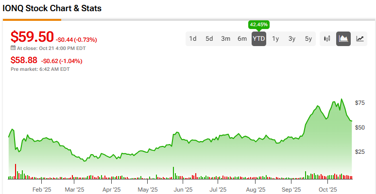 한편, IONQ 주식은 화요일 0.73% 하락해 59.50달러에 마감했다.